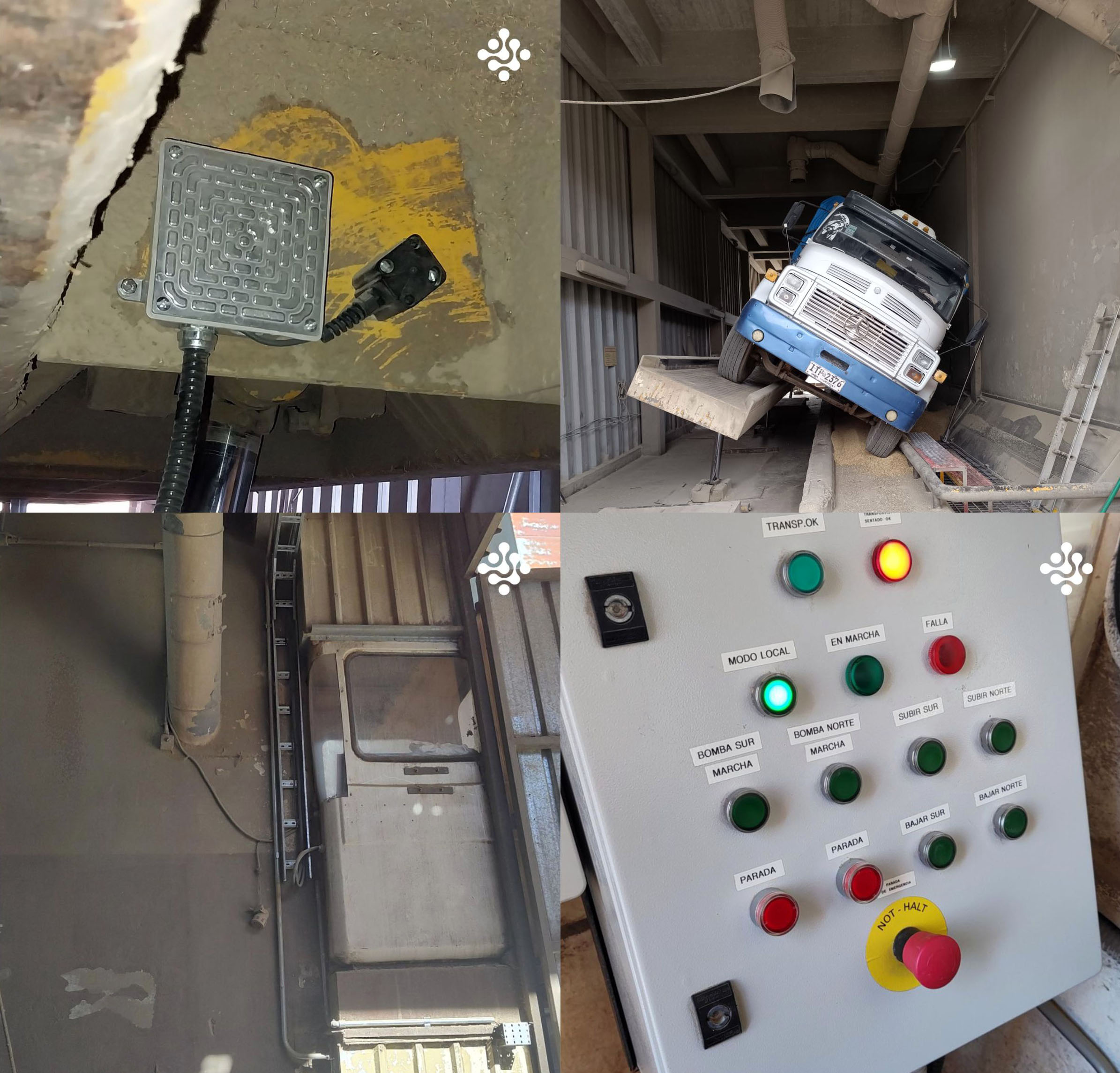 Toda la operación se visualiza y gestiona desde un SCADA Indusoft, donde se programan límites de inclinación por tipo de camión para evitar impactos con cañerías de transporte. El SCADA también verifica que el conductor esté sentado en la cabina y que se haya autorizado la descarga automática a través de un checklist digital que sigue el protocolo operativo definido por la planta.